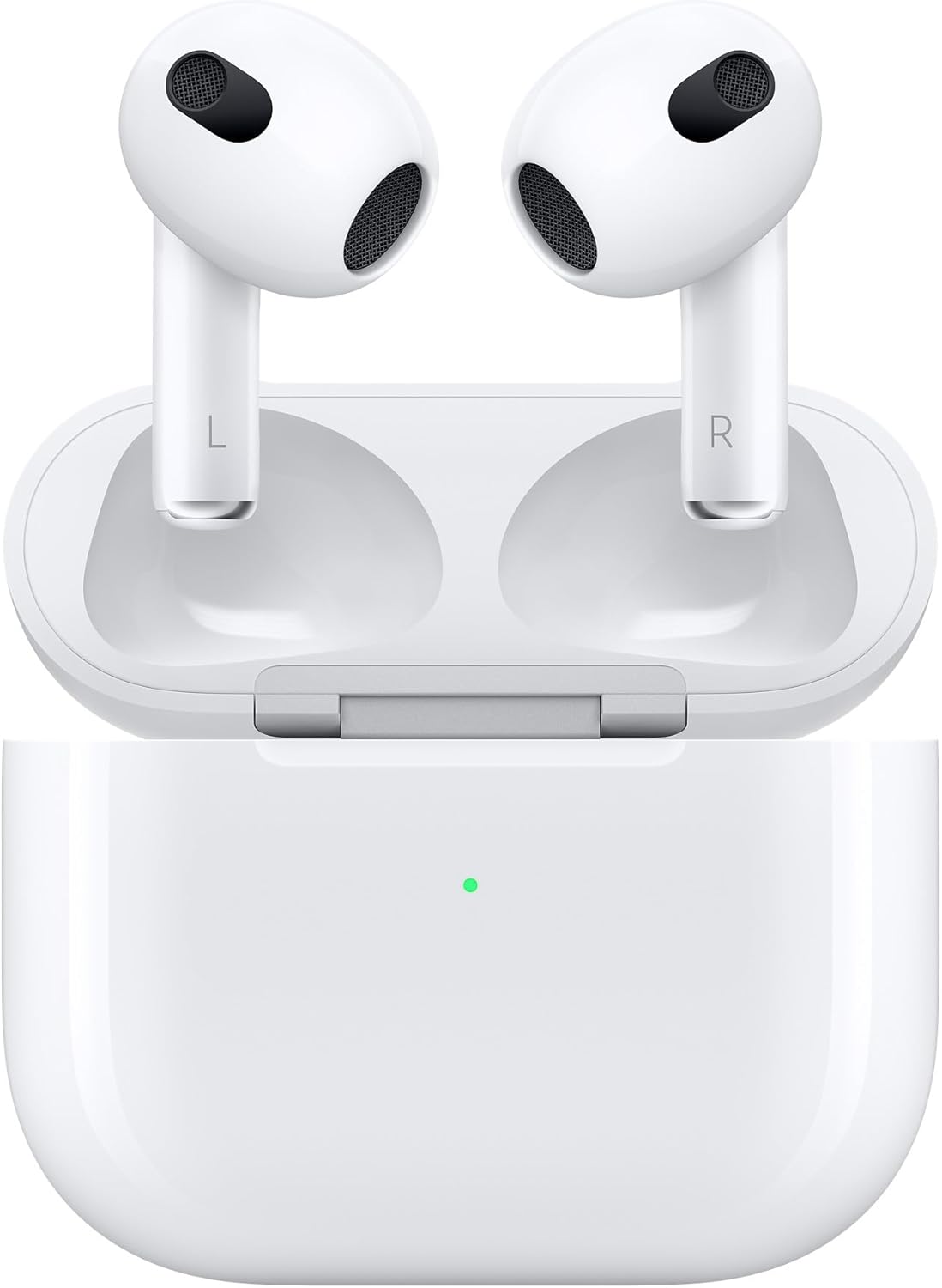 Product DescriptionEnjoy a truly immersive listening experience with Apple AirPods (3rd Generation). Featuring Personalized Spatial Audio, adaptive EQ, and a comfortable contoured design, these renewed AirPods deliver crystal-clear sound and all-day comfort. The sweat and water-resistant build makes them ideal for daily use, workouts, and travel. Stay connected with intuitive touch controls and seamless pairing across your Apple devices. With up to 30 hours of total listening time using the charging case, AirPods (3rd Generation) combine premium sound with effortless convenience. |